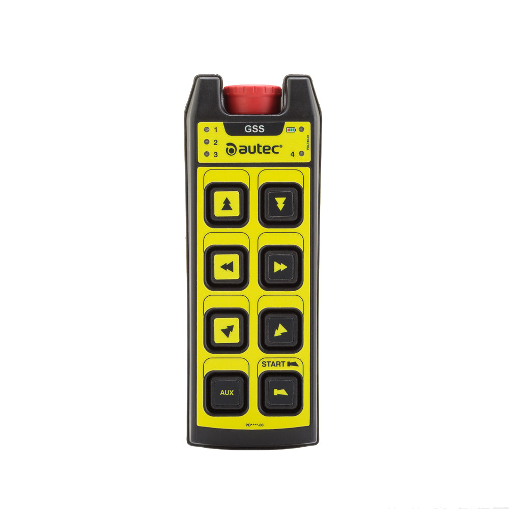 The highly compact base station operates with a wide range of input voltages, and has 11 onboard power relays, and provision for one expansion board that can provide additional outputs or other features. The semi-transparent cover allows to see the high-intensity flashing lamp inside which operates when the cableless control system is in use.